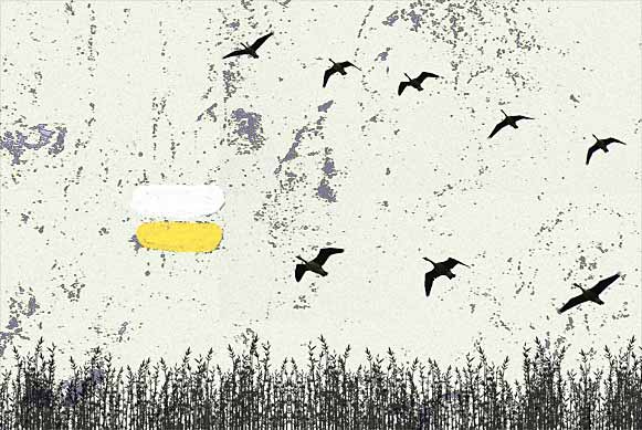 Todo se mueve excepto mi sendero. Para las plantas he usado un pincel japonés. La liebre es una pintura del conjunto rupestre de Torcal de las Bojadillas, cerca de Nerpio.